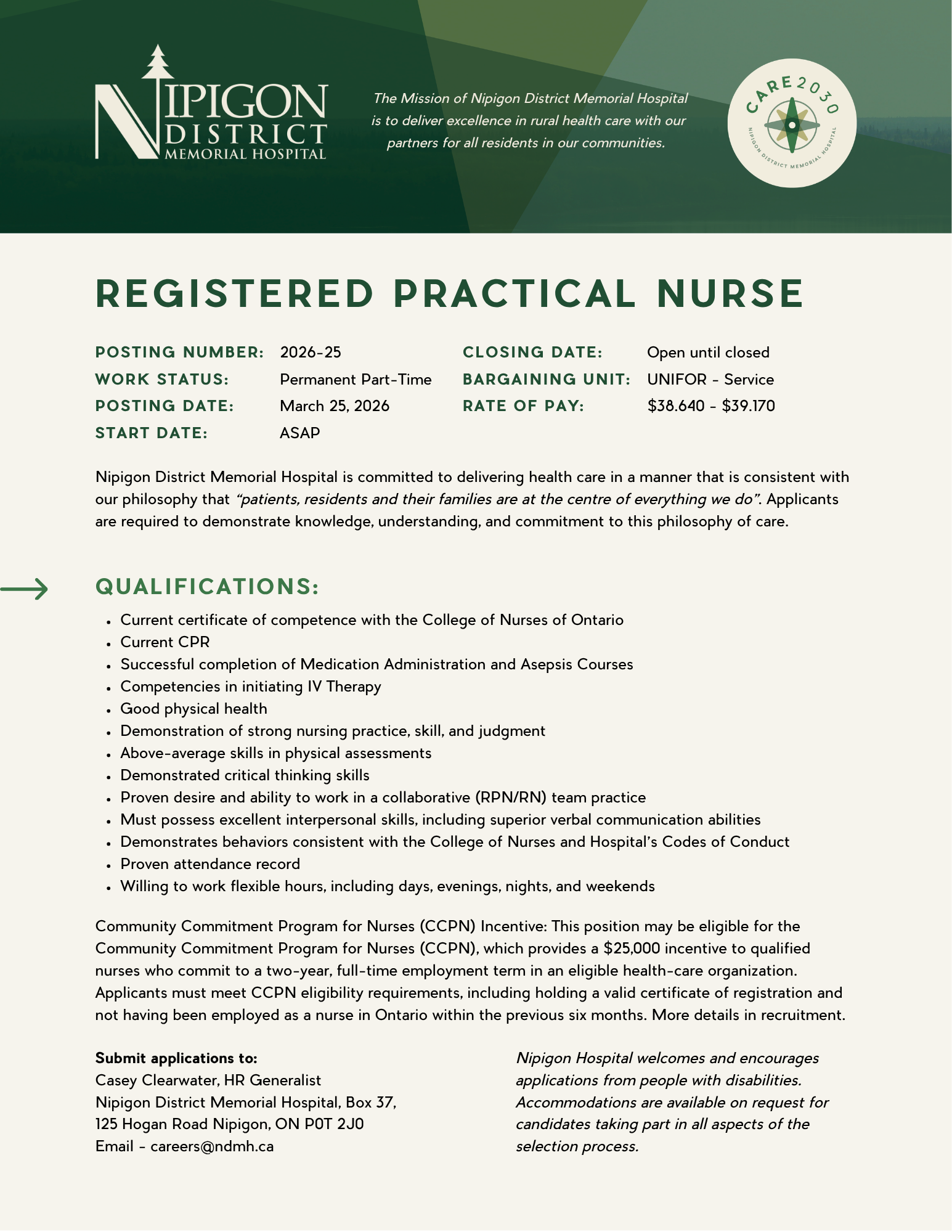 | Registered Practical Nurse | 3/25/2026 | Permanent Part-Time | March 25, 2026 | Open until filled | Learn More |